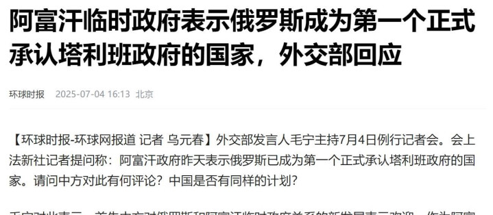 然而,印度这一公然撕破与中俄关系的举动,正在为其带来反噬。一方面,中国学者罕见地对印度发出警告,劝莫迪政府主动放弃上合组织成员国资格;另一方面,俄罗斯近期的举动更加引人注目,正式接受了塔利班任命的阿富汗新任大使国书,成为全球第一个承认阿塔政权的国家。紧接着,中国外交部表示欢迎,并支持国际社会加强与阿富汗临时政府的接触。